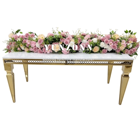 Marco de acero inoxidable dorado Espejo de cristal Mesa DE BODA superior 10 personas Mesa de boda